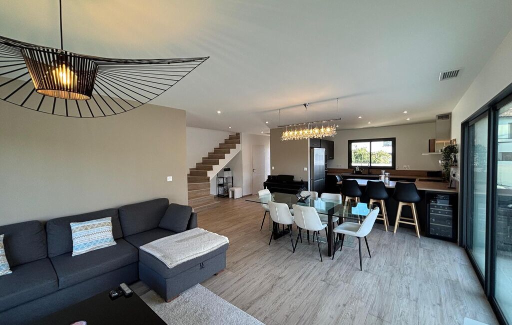 Magnifique pièce à vivre baignée de lumière, grâce aux nombreuses baies vitrées.