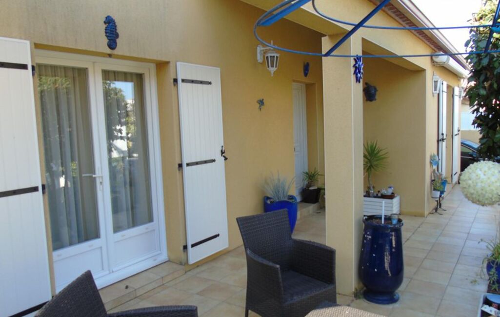 Élégante Villa des années 2004, de construction traditionnelle, avec fondations renforcées, et entièrement surélevée d'un vide sanitaire.