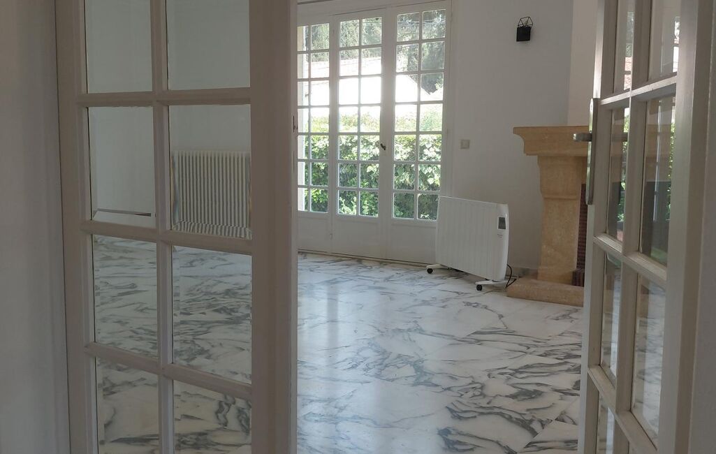 Cette villa au charme fou ! A conservée des prestations soignées et intemporelles avec son magnifique sol en marbre de Carrare en parfait état, ses portes en verre biseauté.