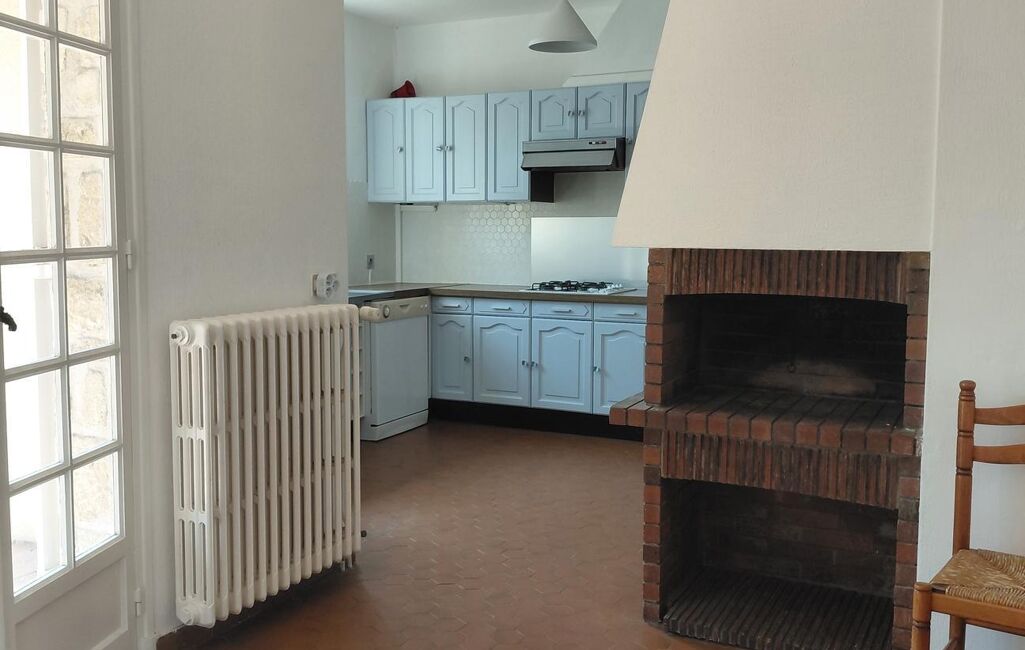 Une cuisine + coin repas de 21,6m² et son barbecue intérieur.