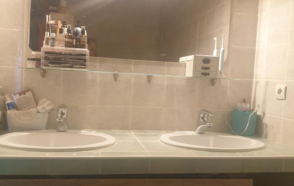 1 chambre 10 m², 1 wc. 1 salle de bains double vasque, baignoire.