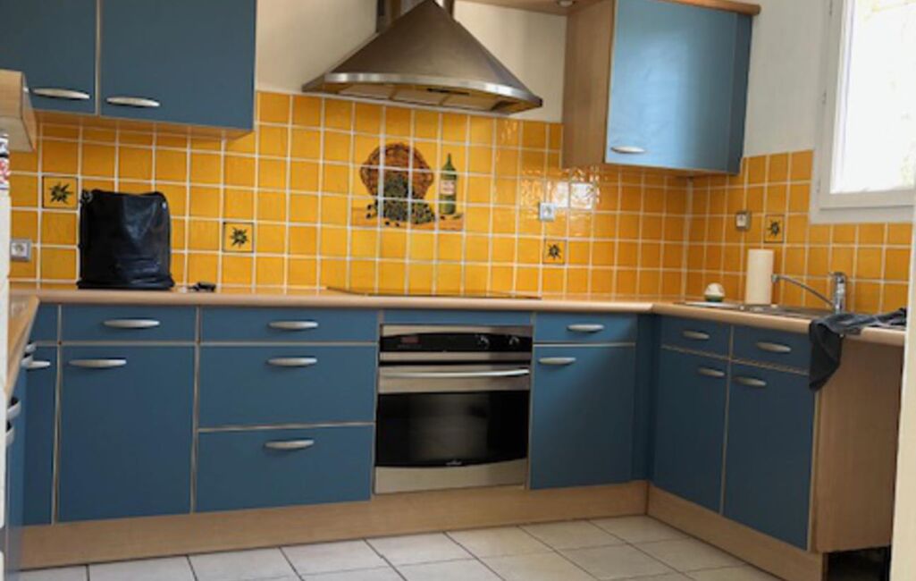 Avec une cuisine US équipée, four, plaque, hotte. nombreux rangements. Séjour:salon accès direct terrasse en partie abritée.